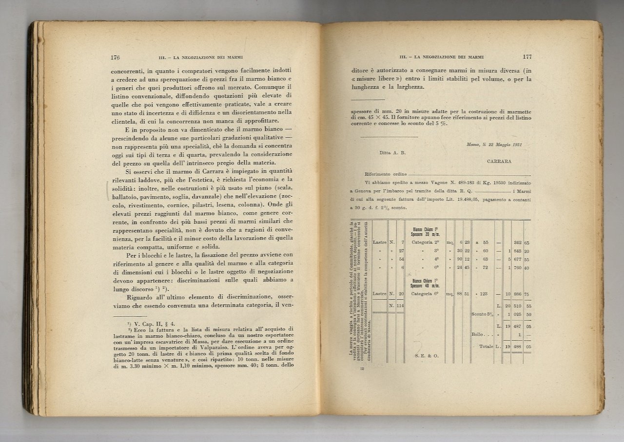 La produzione e il commercio dei marmi italiani. La gestione aziendale sotto l'aspetto economico-tecnico. | Livres anciens et modernes | Corsani Gaetano.