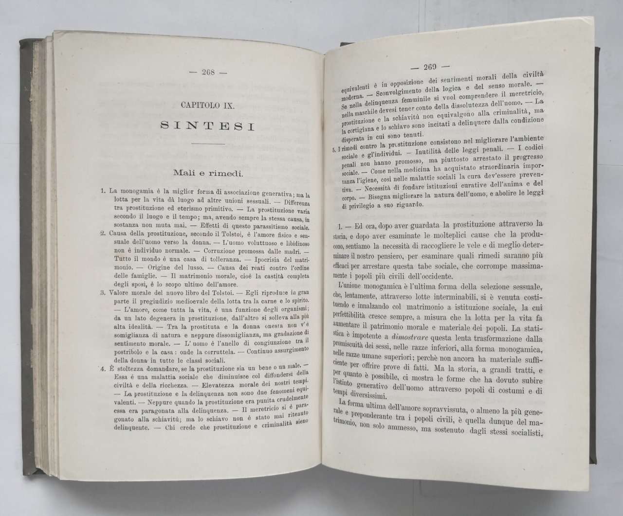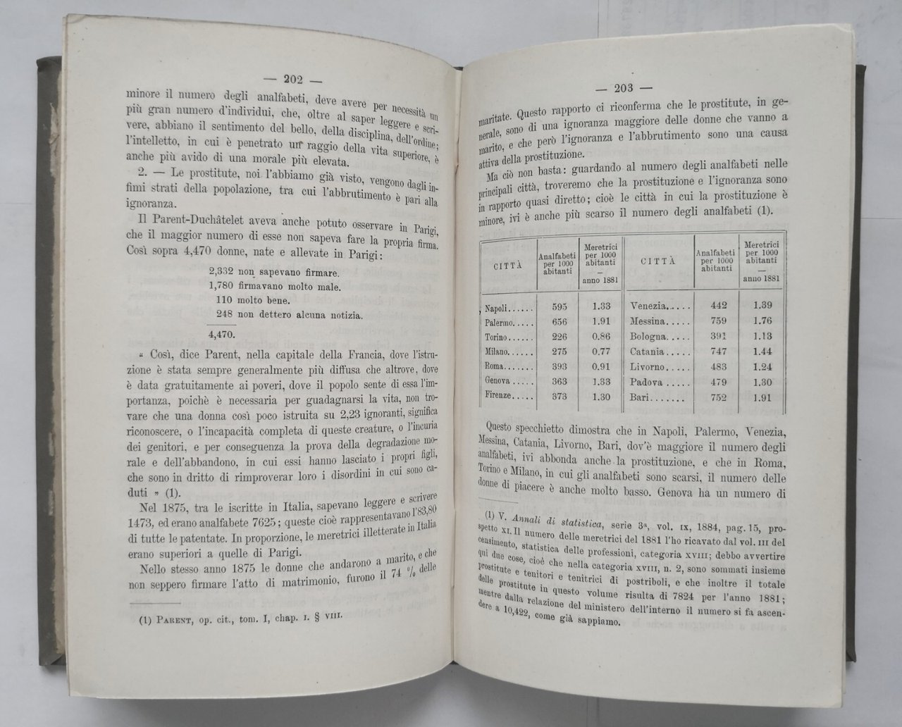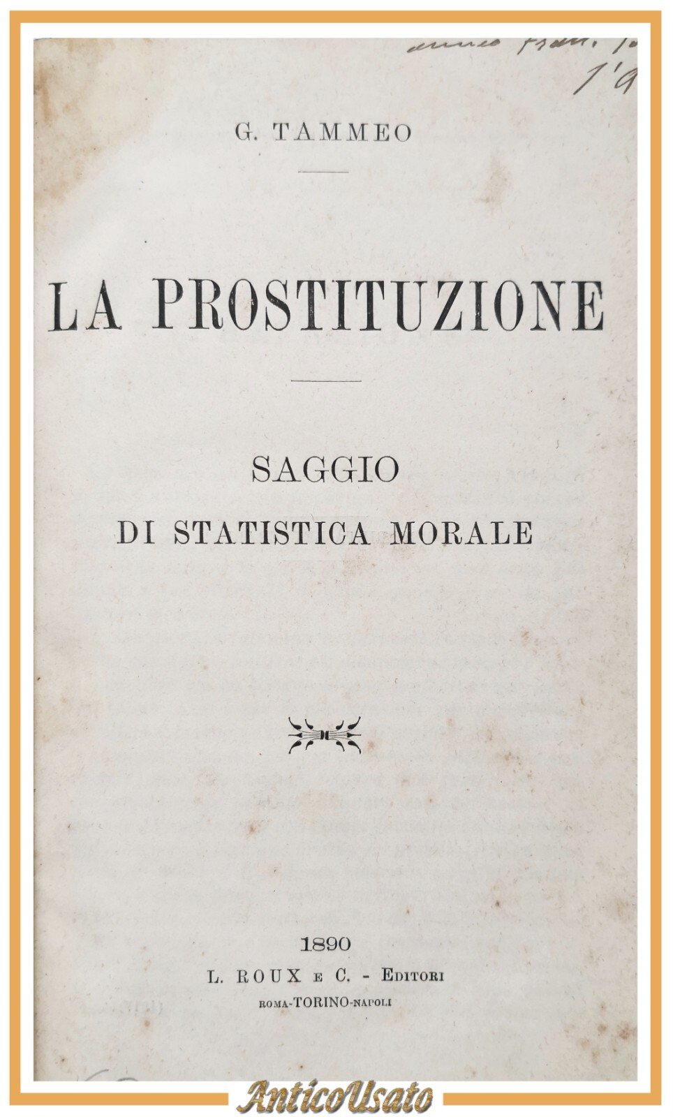 LA PROSTITUZIONE saggio di statistica morale di Tammeo 1890 Roux Libro antico