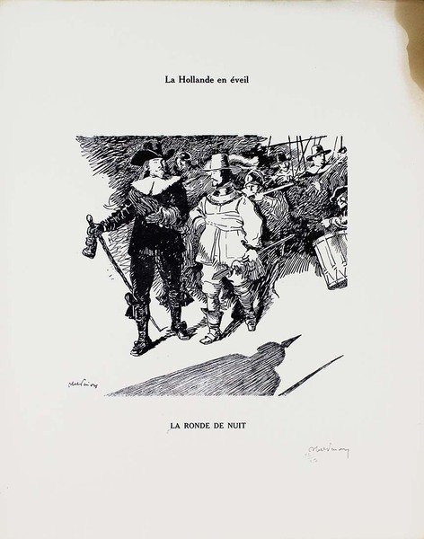 Abel Jules Faivre (Lione 1867 - Nizza 1945) Litografia originale firmata a mano dall'artista.Dimensioni: 56 x 38,5 cmCon certificato di autenticità C.O.A.Ingiallimento laterale come da foto.Esemplare numero 62/250 La raccolta di litografie umoristiche del caricaturista francese Abel Faivre (Lione 1867-Nizza 1945), andata a confluire nel volume Jours de guerre,fu pubblicata in due tomi tra il 1915 e il 1919. Con il procedere del conflitto, l'opinione pubblica di tutti i paesi coinvolti,che aveva dapprima affrontato tale evento con ottimismo, mutò rapidamente opinione sino a considerare la guerra, senza mezzi termini,come un avvenimento rovinoso. In tale contesto, le vignette satiriche di guerra possedevano un potente effetto catartico,adempivano un ruolo sociale irrinunciabile, fornendo una valvola di sfogo all’incombere dal più cupo pessimismo. Abel Jules Faivre (Lyon 1867 - Nizza 1945) Originale Lithographie vom Künstler von Hand signiert.Abmessungen: 56 x 38,5 cmMit Echtheitszertifikat C.O.A.Seitliche Vergilbung wie auf dem Foto.Kopieren Sie die Nummer 62/250 Die Sammlung humorvoller Lithographien des französischen Karikaturisten Abel Faivre (Lyon 1867-Nizza 1945), die in den Band Jours de guerre floss,es wurde zwischen 1915 und 1919 in zwei Bänden veröffentlicht. Im Verlauf des Konflikts wurde die öffentliche Meinung in allen beteiligten LändernWer dieses Ereignis anfangs mit Optimismus konfrontiert hatte, änderte schnell seine Meinung, um den Krieg ohne Zweifel zu betrachten.wie ein ruinöses Ereignis. In diesem Zusammenhang hatten die satirischen Kriegskarikaturen eine starke kathartische Wirkung.Sie erfüllten eine unverzichtbare soziale Rolle und bildeten ein Entlastungsventil gegen den dunkelsten Pessimismus. Abel Jules Faivre (Lyon 1867 - Nice 1945) Lithographie originale signée à la main par l'artiste.Dimensions: 56 x 38,5 cmAvec certificat d'authenticité C.O.A.Jaunissement latéral comme sur la photo.Copie numéro 62/250 La collection de lithographies humoristiques du caricaturiste français Abel Faivre (Lyon 1867-Nice 1945), qui allait se fondre dans le volume Jours de guerre,il a été publié en deux volumes entre 1915 et 1919. À mesure que le conflit progressait, l'opinion publique de tous les pays impliqués,qui avait d'abord fait face à cet événement avec optimisme, a rapidement changé d'avis pour envisager la guerre, en termes non équivoques,comme un événement ruineux. Dans ce contexte, les caricatures de guerre satiriques ont eu un puissant effet cathartique,ils remplissaient un rôle social indispensable, fournissant une soupape de décharge du pessimisme le plus sombre. Abel Jules Faivre (Lyon 1867 - Nice 1945) Original lithograph signed by hand by the artist.Dimensions: 56 x 38.5 cmWith certificate of authenticity C.O.A.Lateral yellowing as in the photo.Copy number 62/250 The collection of humorous lithographs by the French caricaturist Abel Faivre (Lyon 1867-Nice 1945), which went to flow into the volume Jours de guerre,it was published in two volumes between 1915 and 1919. As the conflict progressed, public opinion in all the countries involved,who had initially faced this event with optimism, quickly changed his opinion to consider the war, in no uncertain terms,like a ruinous event. In this context, the satirical war cartoons had a powerful cathartic effect,they fulfilled an indispensable social role, providing a relief valve from the darkest pessimism.