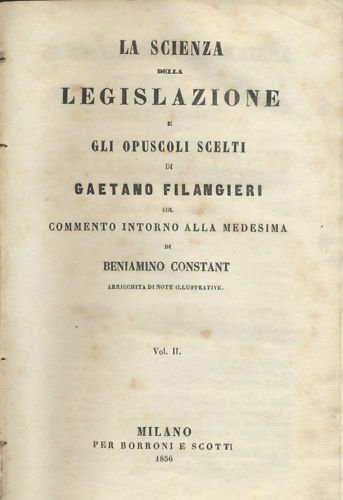 LA SCIENZA DELLA LEGISLAZIONE E GLI OPUSCOLI SCELTI volume II di Filangieri 1856