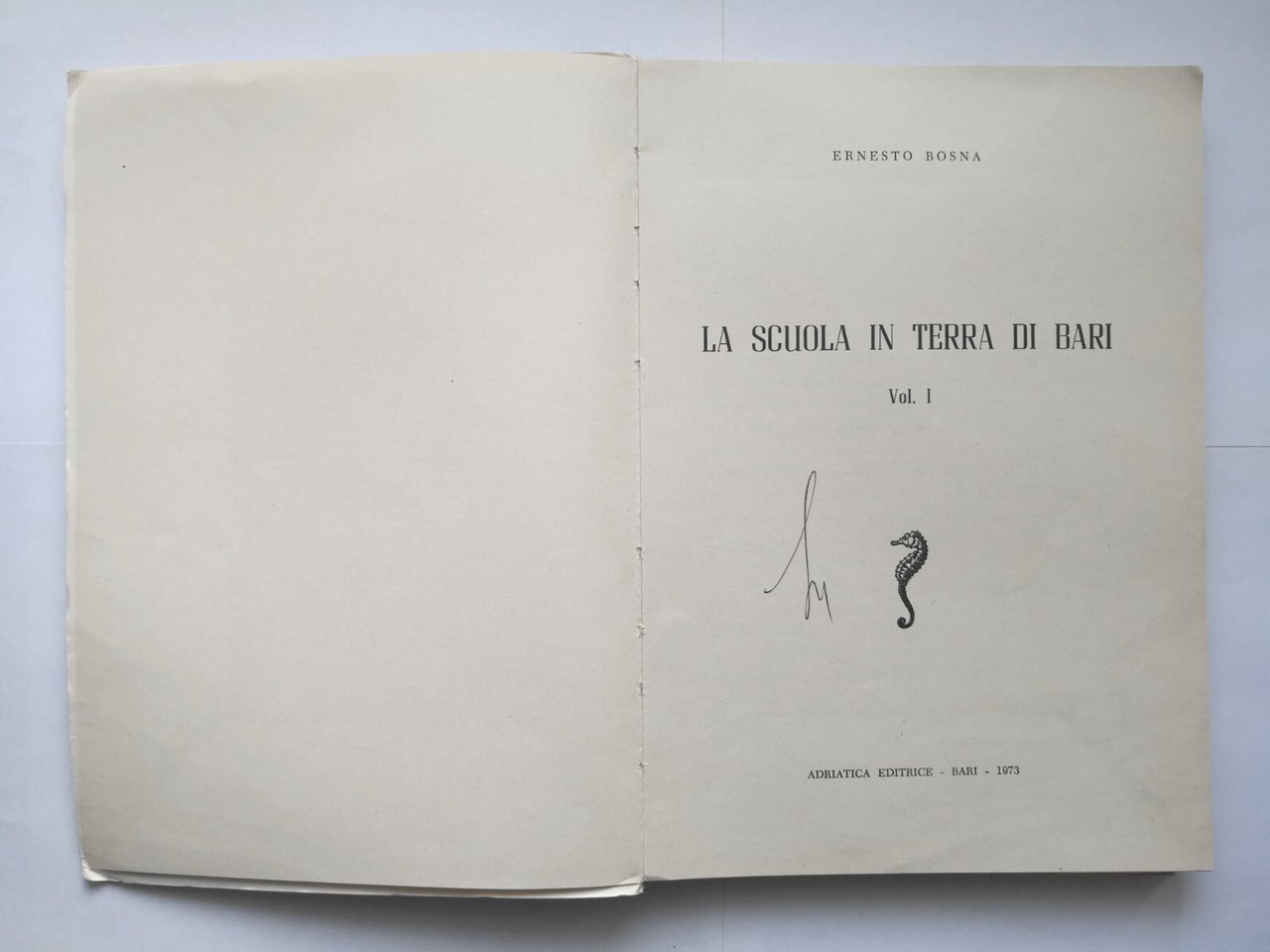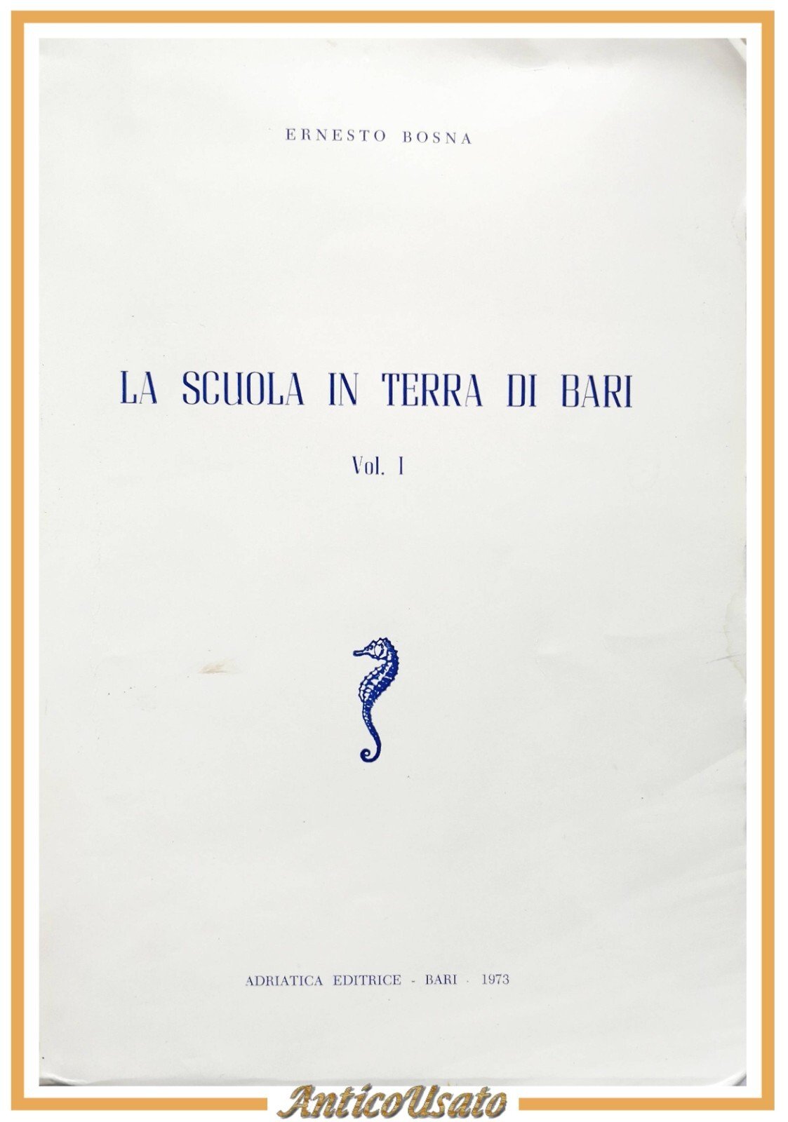 LA SCUOLA IN TERRA DI BARI di Ernesto Bosna volume I 1973 Adriatica Libro storia