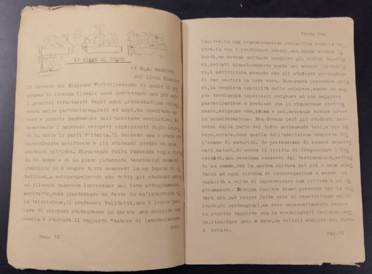 LA SESTA ORA PERIODICO DI VITA STUDENTESCA A DIFFUSIONE INTERNA.