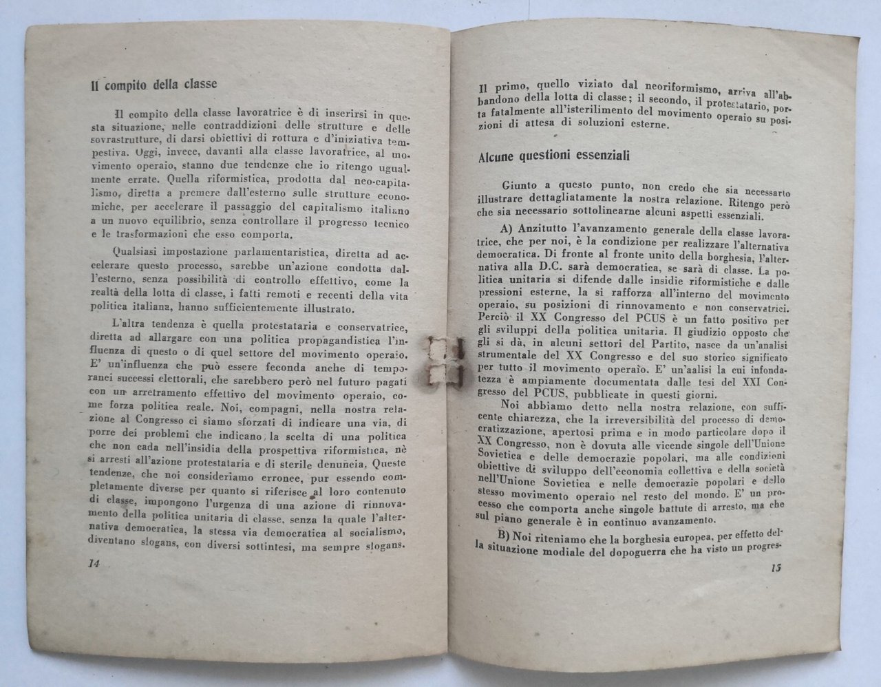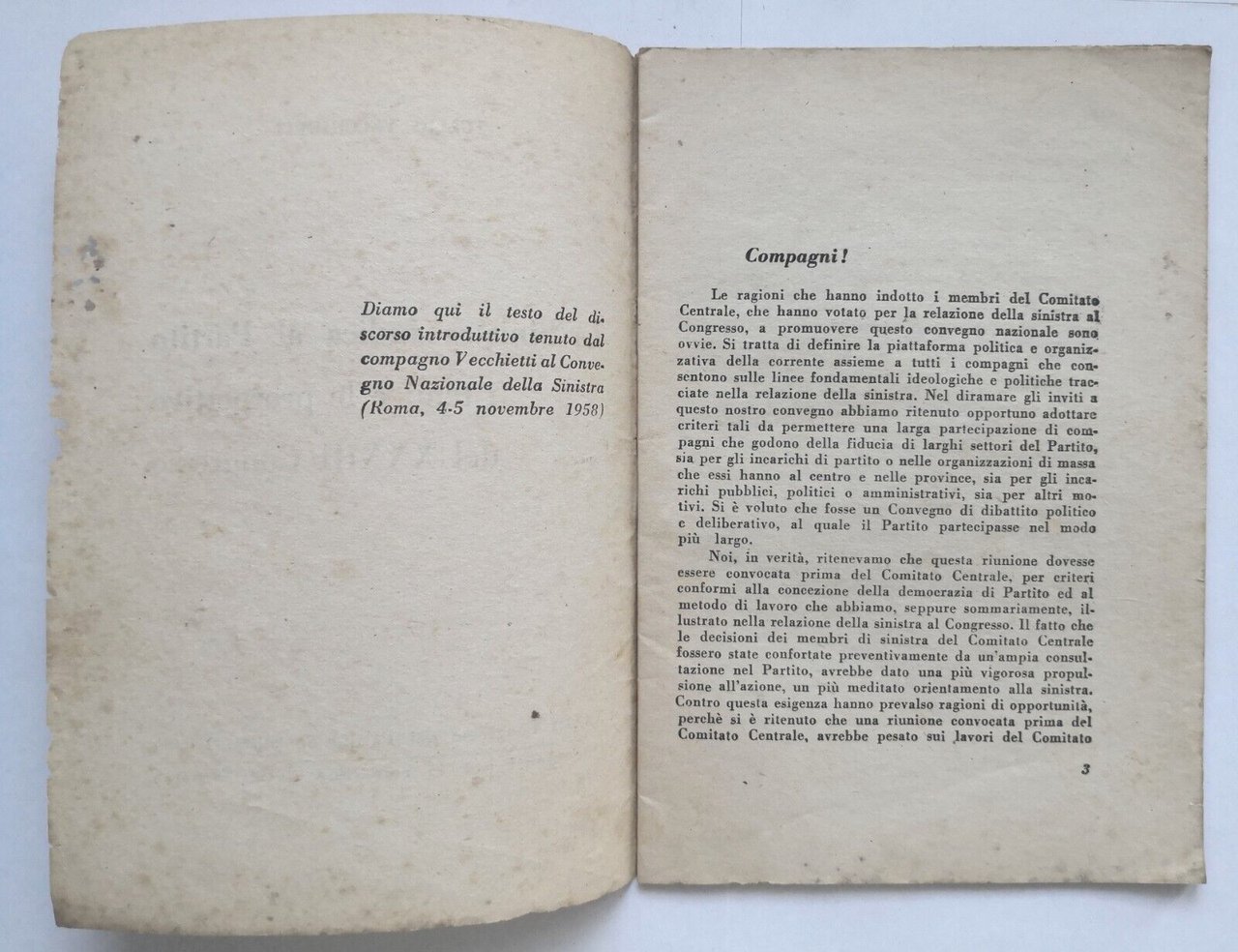 LA SINISTRA INDICA AL PARTITO I TEMI E LE PROSPETTIVE DEL XXXIII CONGRESSO del partito socialista italiano, documenti per la relazione della sinistra di Tulio Vecchietti