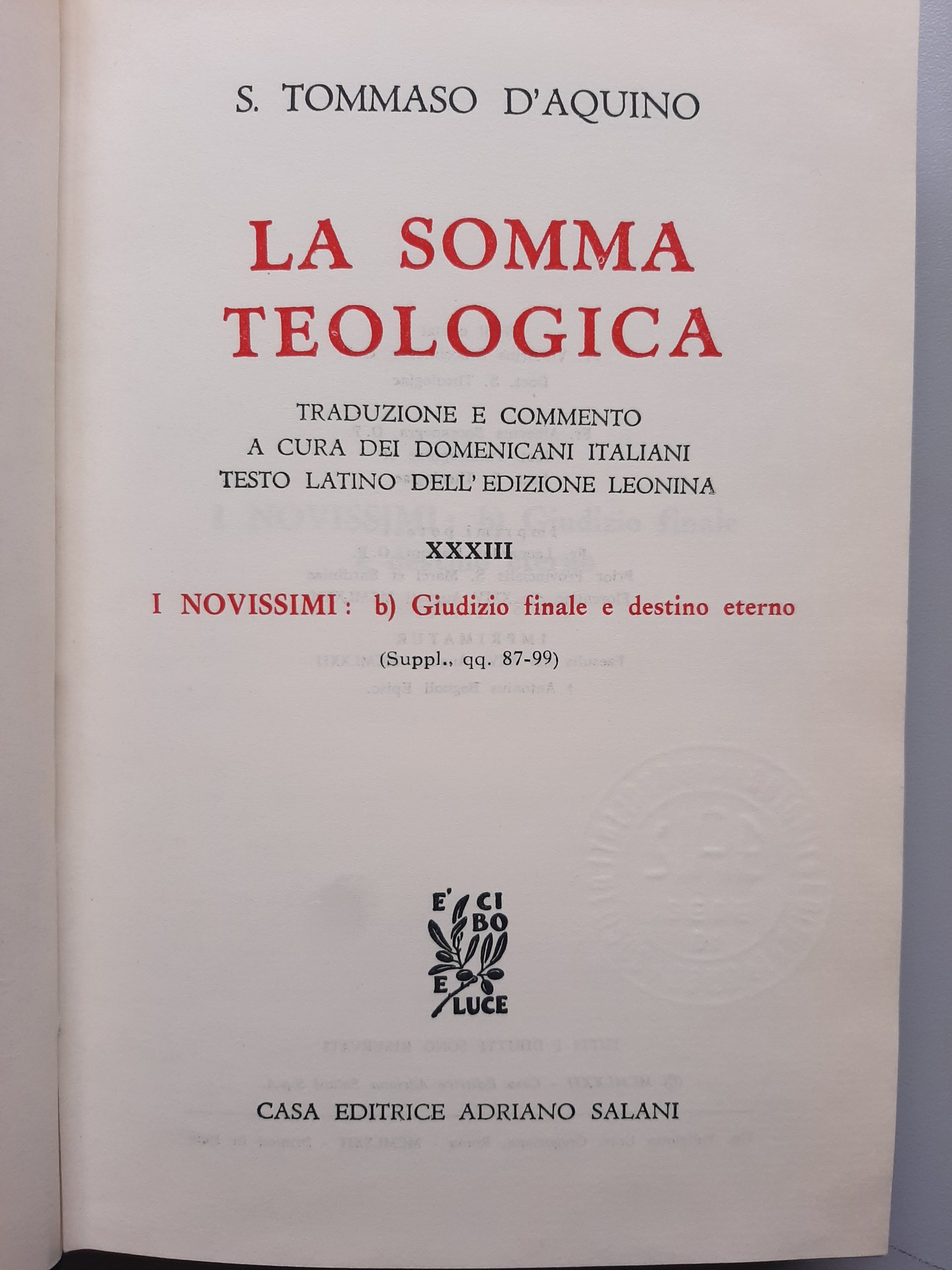 34 volumi. Traduzione e commento a cura dei Domenicani italiani, testo latino dell'edizione leonina. Ottima condizione generale. Ultimo volume, indice generale, dall'edizione stampata da "Edizioni Studio Domenicano"
