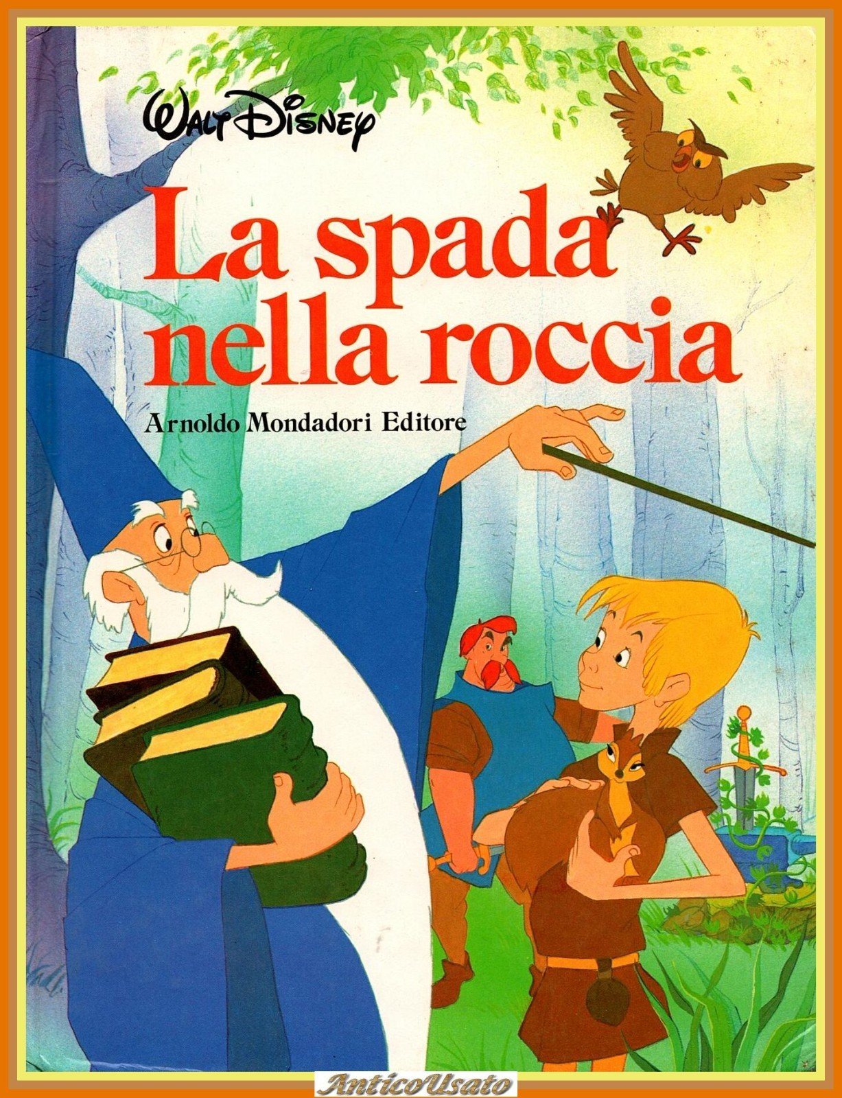 LA SPADA NELLA ROCCIA di Walt Disney. Mondadori Editore, I edizione maggio 1985 . 112 pagine, numerose illustrazioni a colori nel testo. Copertina editoriale in brossura. Stato di conservazione: molto buono (pagine normalmente ingiallite, dedica anonima in antiporta) Libro usato illustrato per l'infanzia cartone animato