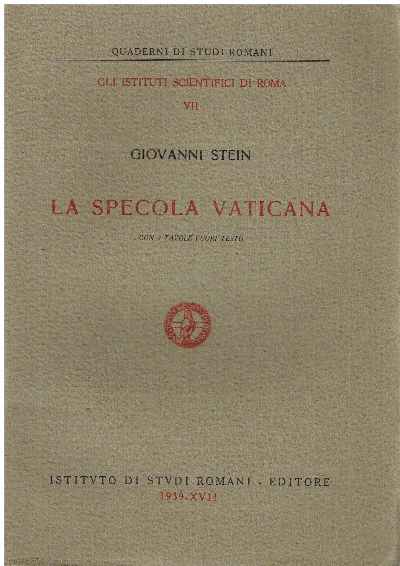 Istituto di studi romani, 1939. Collana Quaderni di studi romani - gli Istituti scientifici in Roma, 7. 10 p, con 2 tavole fuori testo, 10 pp. spillato Perfetto (Mint) come nuovo.