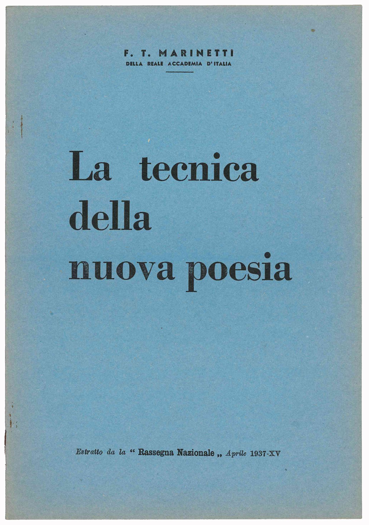 La tecnica della nuova poesia. Estratto da la "Rassegna Nazionale" | Livres anciens et modernes | MARINETTI, Filippo Tommaso (1876-1944)