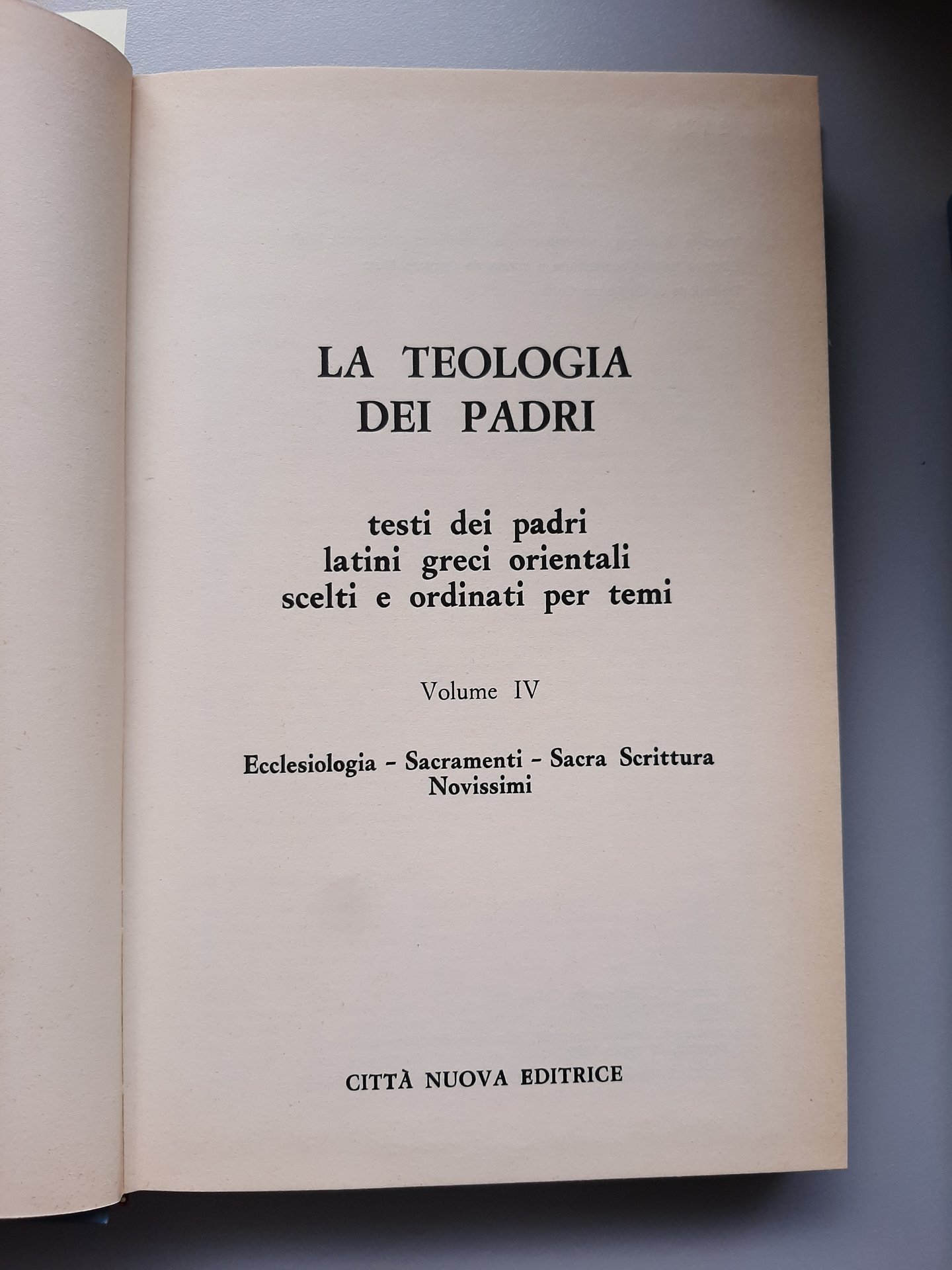 La Teologia dei Padri, volume 4. Testi dei Padri latini, greci, orientali, scelti ed ordinati per temi. Ecclesiologia, sacramenti, Sacra Scrittura, novissimi