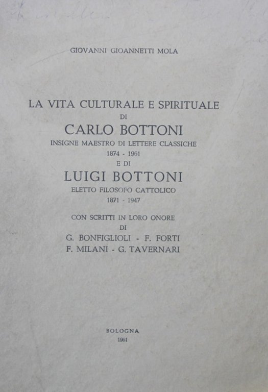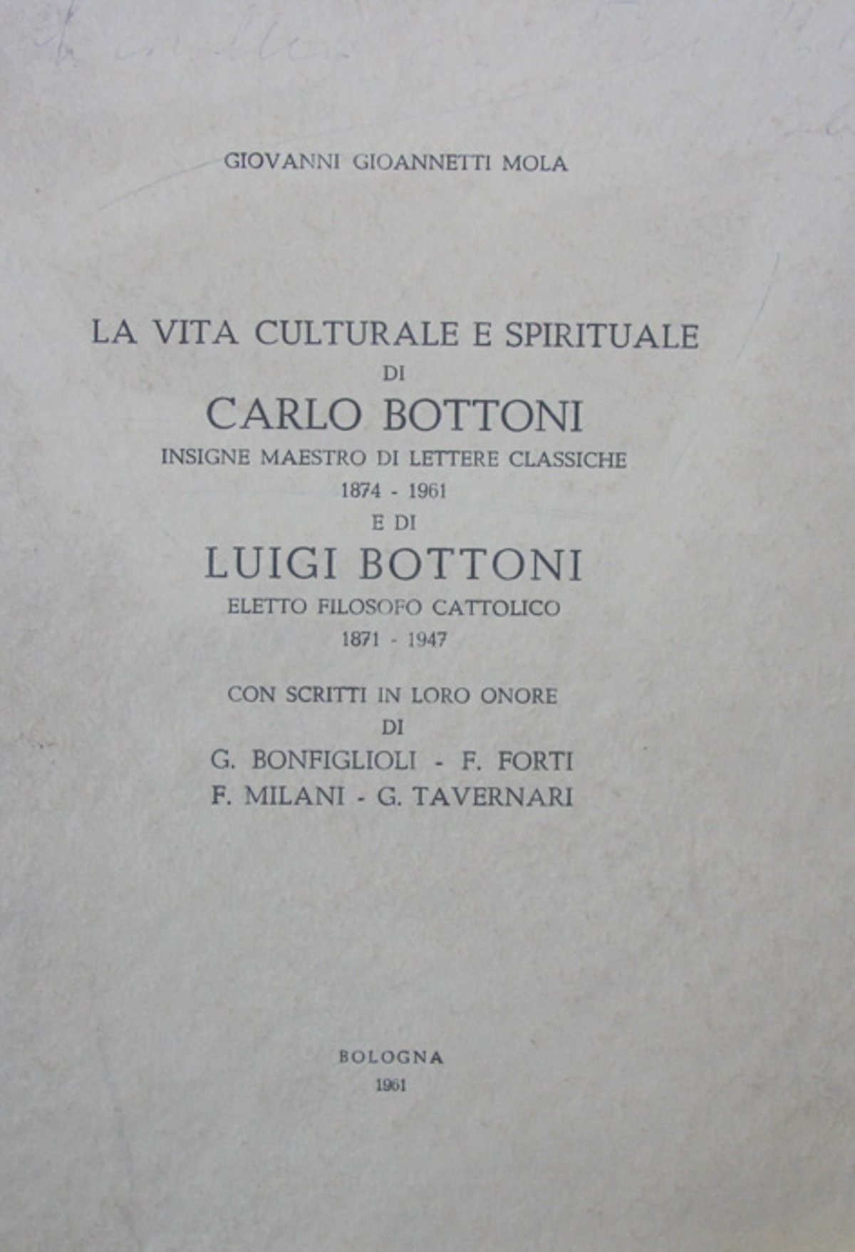 La vita culturale e spirituale di Carlo Bottoni insigne maestro di lettere classiche 1874-1961 e di Luigi Bottoni eletto filosofo cattolico 1871-1947