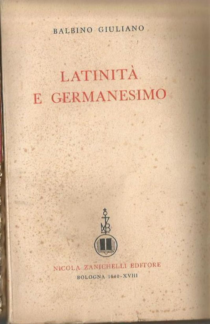 LATINITA' E GERMANESIMO di Balbino Giuliano 1940 Nicola Zanichelli libro usato