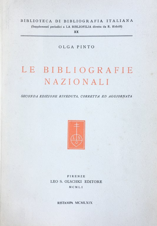 Intonso. Coll. Biblioteca di Bibliografia Italiana. Supplementi periodici a La Bibliofilia, XX. Seconda edizione riveduta corretta e aggiornata. 010 � Ba In Ottavi (15-23cm ) Ottimo (Fine) Ottimo