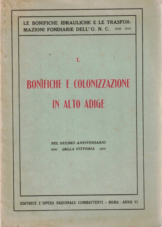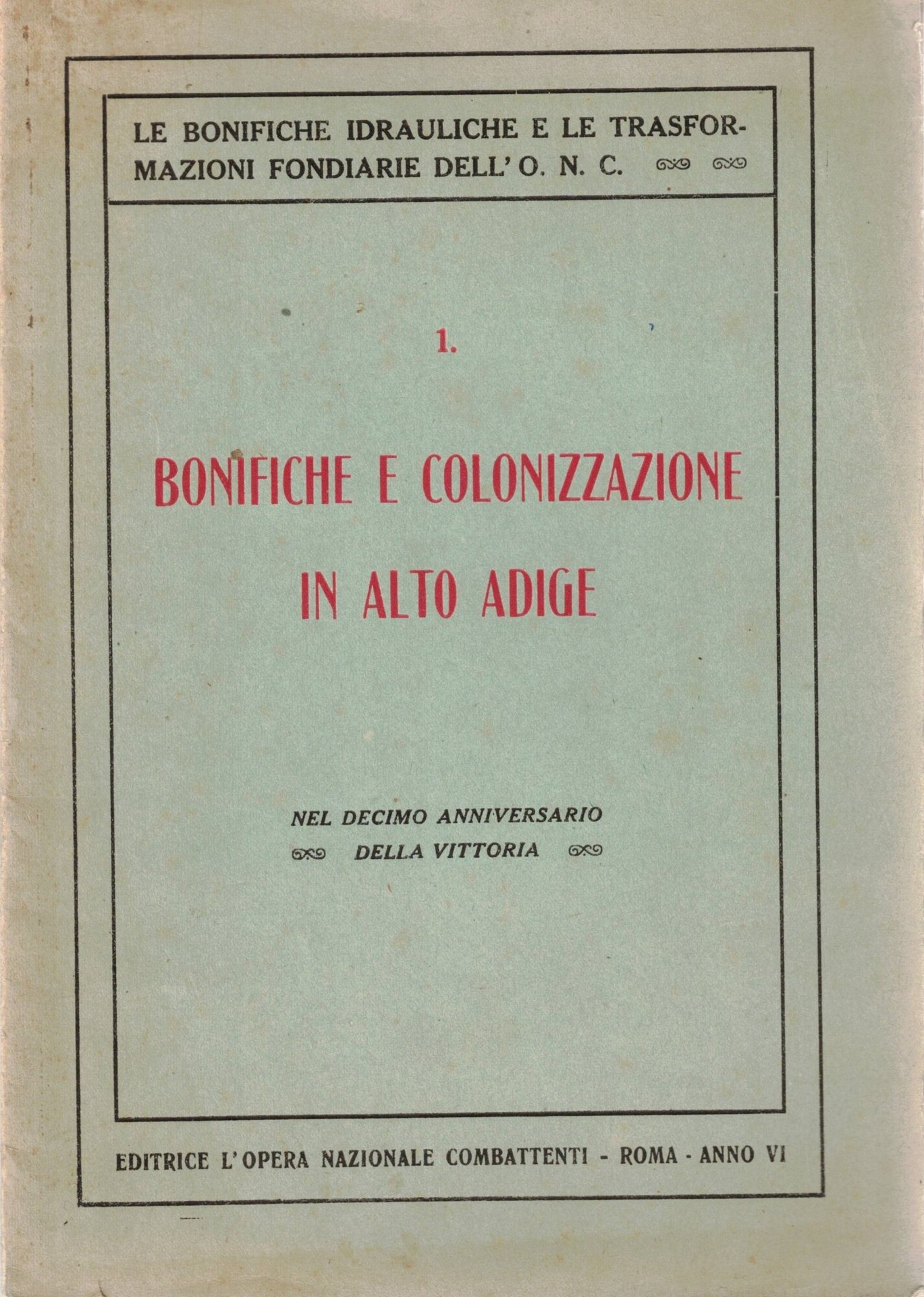 Le bonifiche idrauliche e le trasformazioni fondiarie dell' O. N. C. BONIFICHE E COLONIZZAZIONE IN ALTO ADIGE 1.