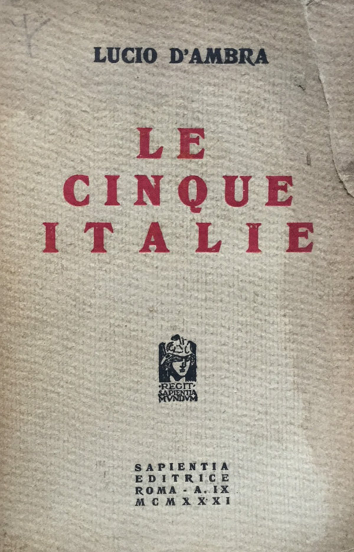 Cm 19, br. edit., pp.(6)-389-(7). Non fresca e picc. mende alla leg., ma buon esempl. [Chiudilettera Soc.Naz.Dante Alighieri per la diffus. della lingua e cult. ital. alla prima p. bianca]. 1930. 16 Mediocre (Poor) Accettabile