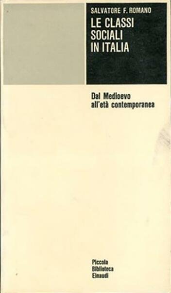 236 p. ; 18 x 10 cm. Piccola biblioteca Einaudi, 63. "La storia delle classi sociali è anche la storia della lenta ascesa dei ceti diseredati, e del sorgere di quei contrasti che, manifestatisi nell'urto con i dirigenti liberali del Rinascimento, si protraggono fino ai nostri anni." I nuovi capitoli riguardano le origini del movimento operaio e contadino, le lotte di classe e il mutamento politico nel periodo seguente alla prima guerra mondiale, le strutture politiche ed economiche del regime fascista. . Brossura editoriale, coperta in cartoncino flessibile colorato (b/n e grigio), leggeri segni del tempo al dorso, per il resto libro integro. Codice libreria 7863.