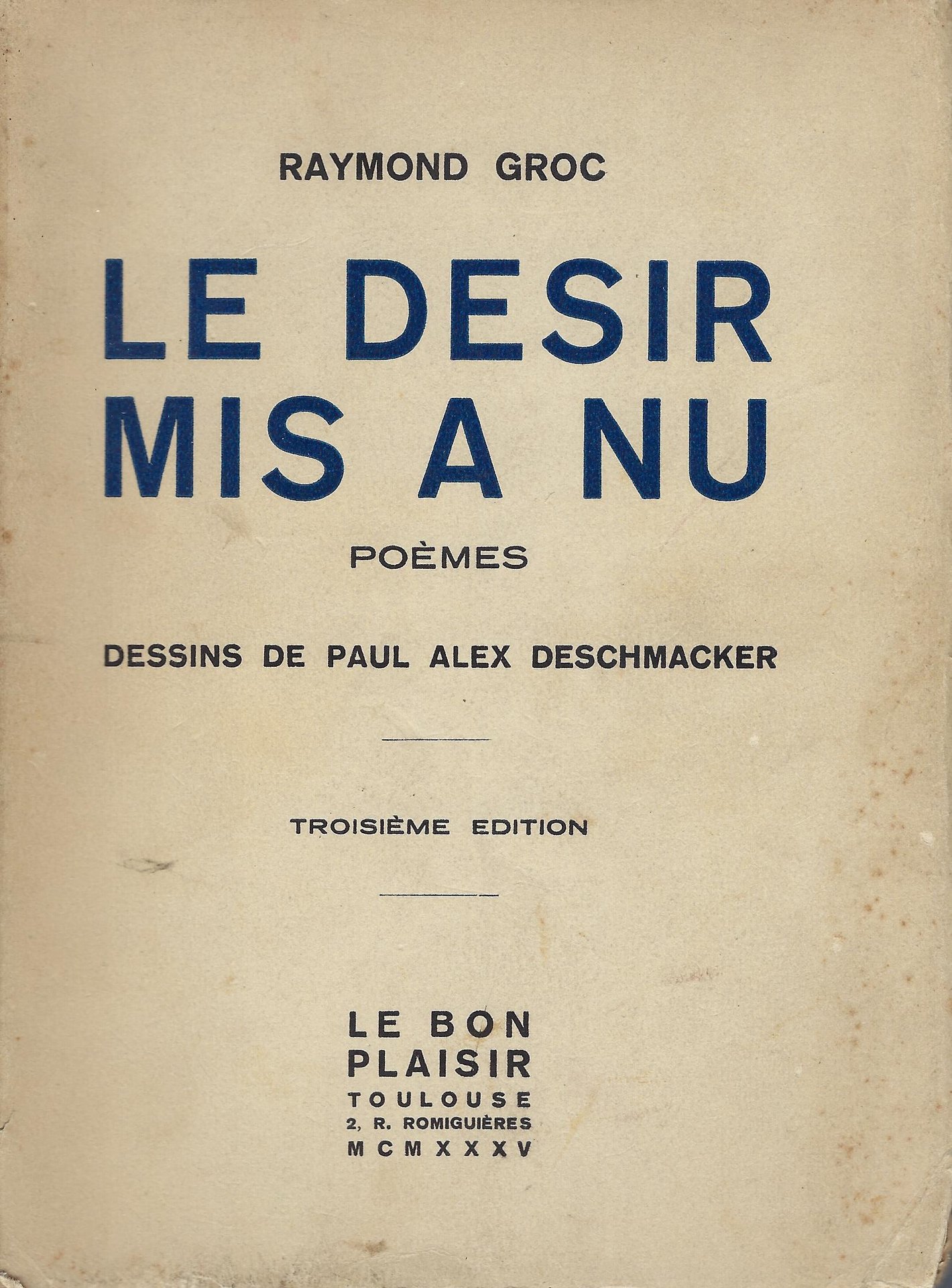 Le Bon plaisir, 1935. Dessins de Paul Alex Deschmacker, 203 pp. brossura Ottimo (Fine) piccolo strappo lungo la cerniera, manca pagina di sguardia.