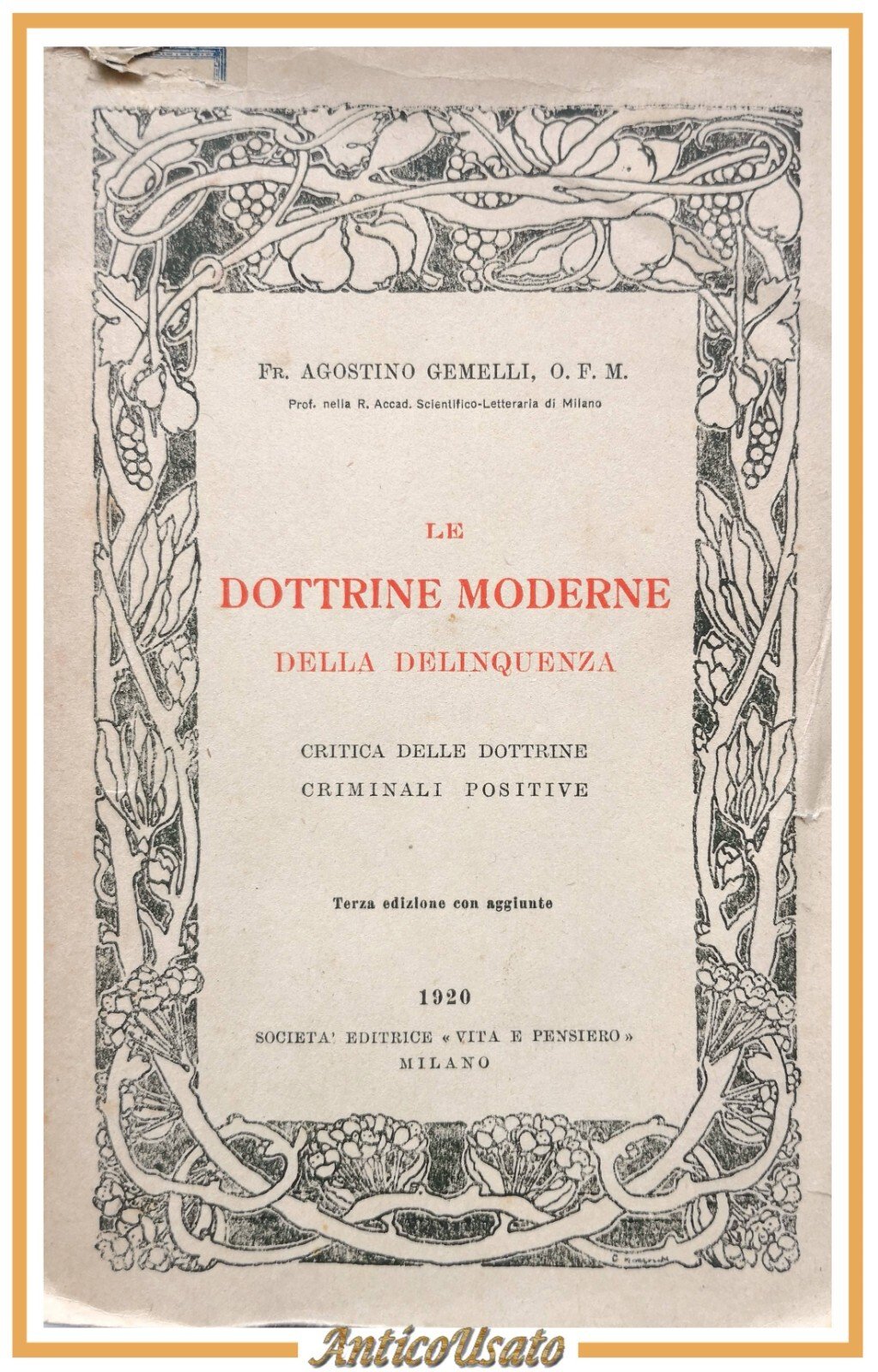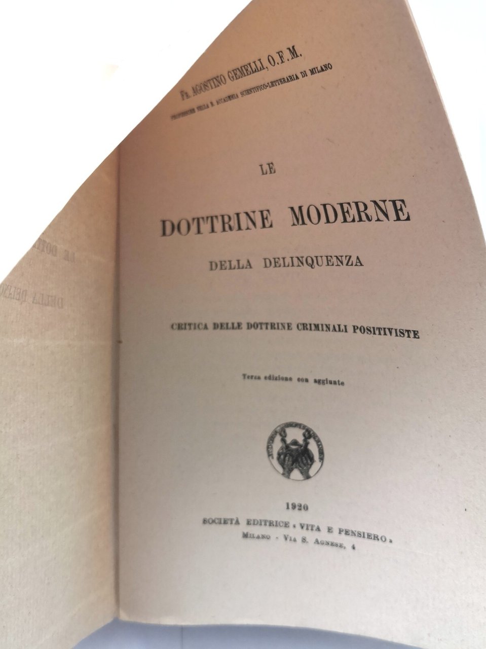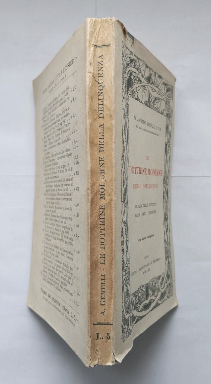 LE DOTTRINE MODERNE DELLA DELINQUENZA di Agostino Gemelli 1920 Vita e Pensiero