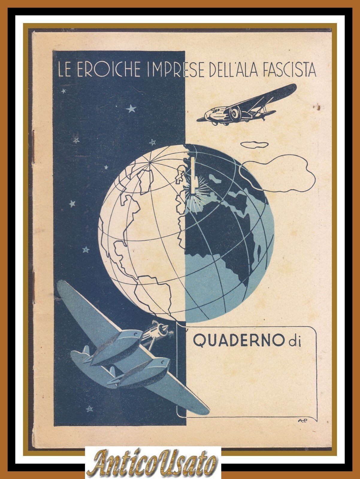 LE EROICHE IMPRESE DELL'ALA FASCISTA Quaderno Quadretti Originale D'epoca aerei