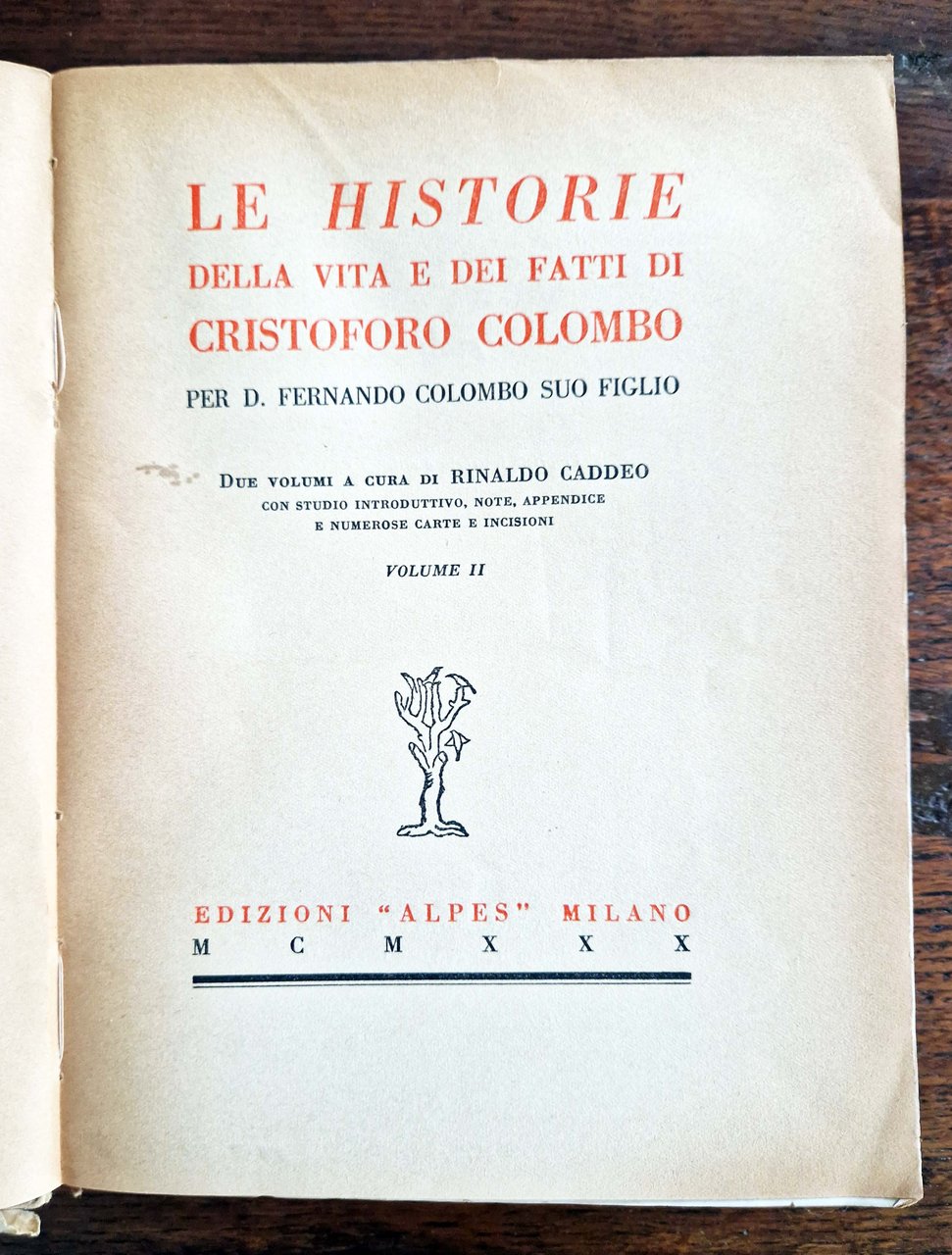 Le historie della vita e dei fatti di Cristoforo Colombo per D. Fernando Colombo suo figlio. Due volumi a cura di Rinaldo Caddeo […]. Volume I [-II].