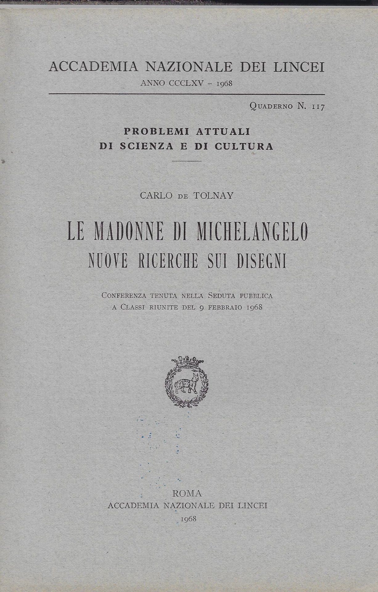 Le Madonne di Michelangelo: nuove ricerche sui disegni : conferenza tenuta nella seduta pubblica a classi riunite del 9 febbraio 1968