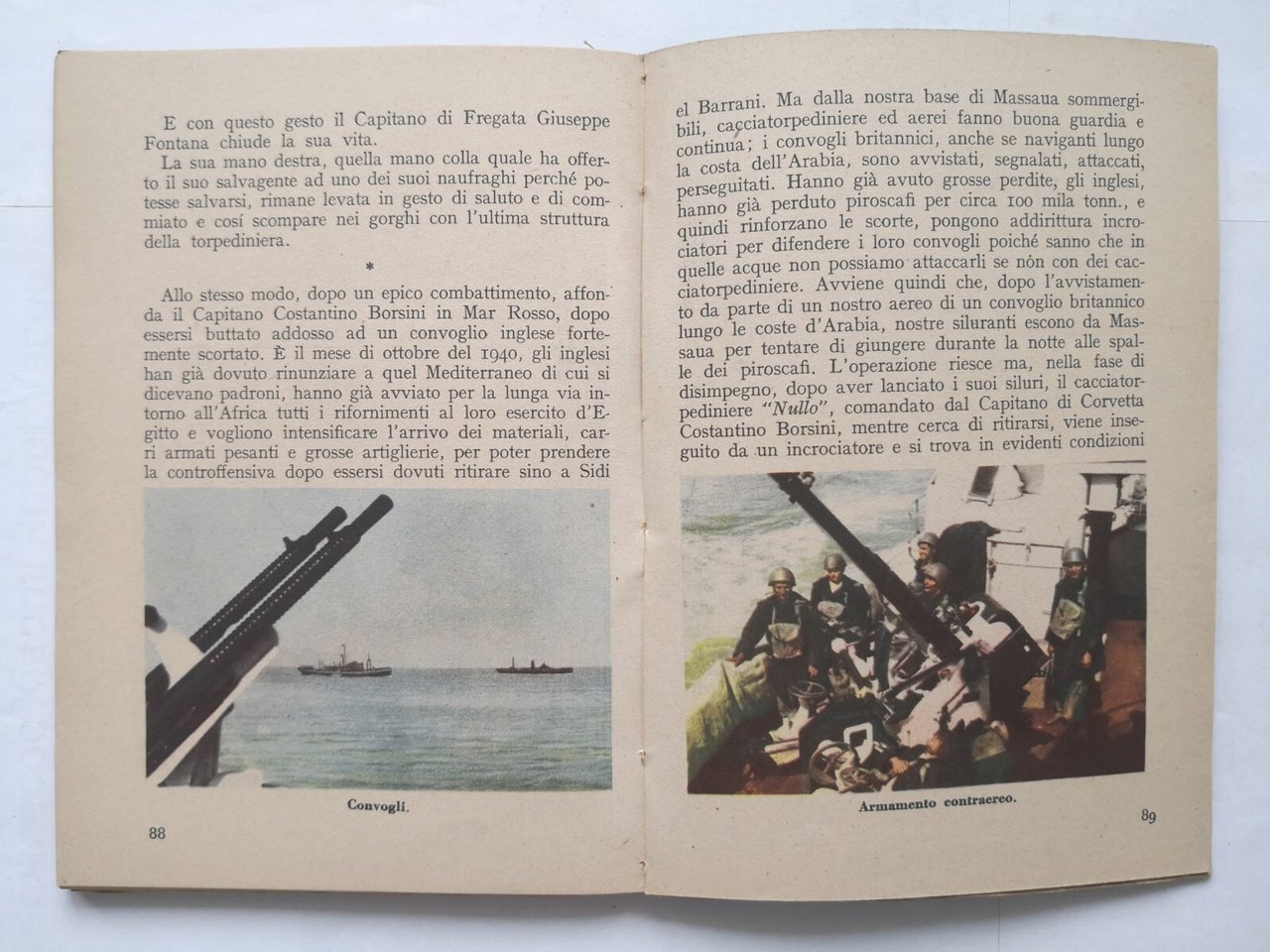Pubblicazione a cura del Ministero Della Marina, 1942.97 pagine, figure in bianco e nero e a colori nel testo e fuori testo. Copertina editoriale in brossura. Stato di conservazione: molto buono (pagine normalmente ingiallite, il piatto anteriore risulta in parte incollato al frontespizio, copertina appena sciupata) Libro usato saggistica militaria seconda guerra mondiale navi