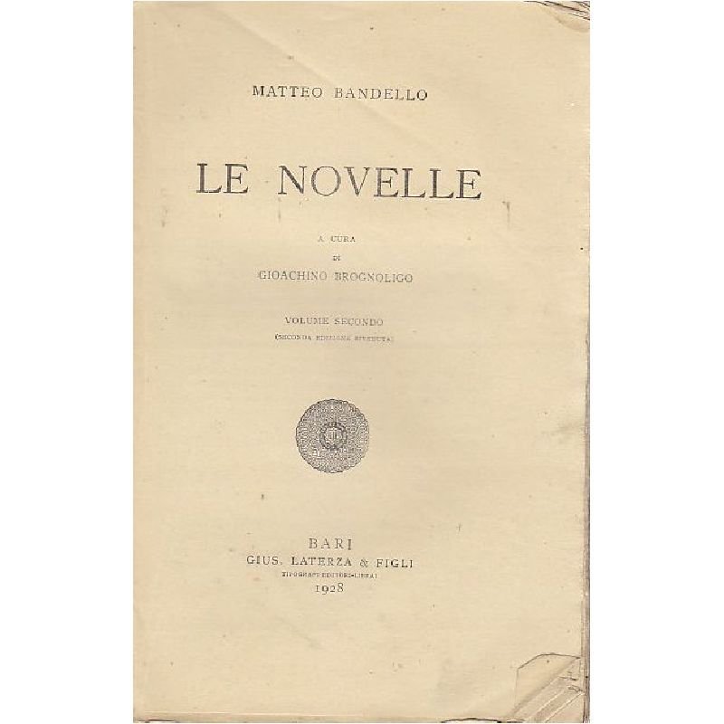 LE NOVELLE di Matteo Bandello Volume II 1928 Laterza a cura di Brognolino libro