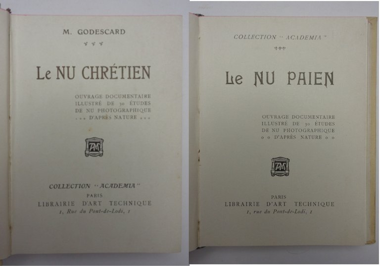 LE NU CHRÉTIEN + LE NU PAIEN. Ouvrage documentaire illustré de 30 études de nu photographique d'après nature.