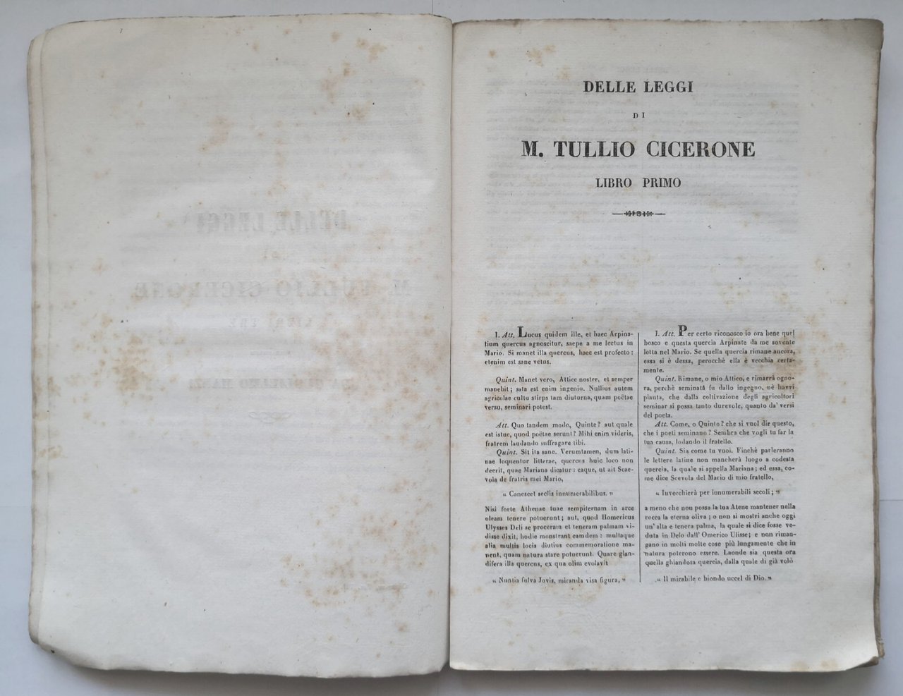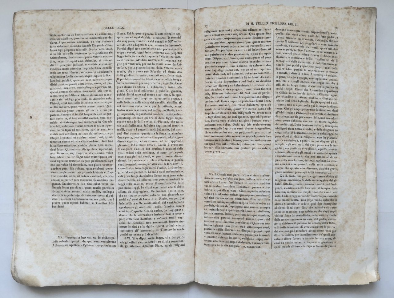 LE OPERE di M. Tullio Cicerone con traduzione e note. Volume VII. Delle Leggi, Libri tre, volgarizzati da Guglielmo Manzi.