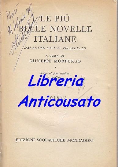 LE PIÙ BELLE NOVELLE ITALIANE DAI SETTE SAVI AL PIRANDELLO a cura di Giuseppe Morpurgo. Mondadori editore, 1952.