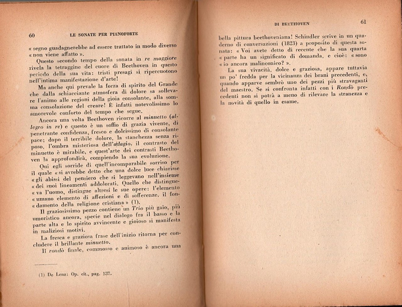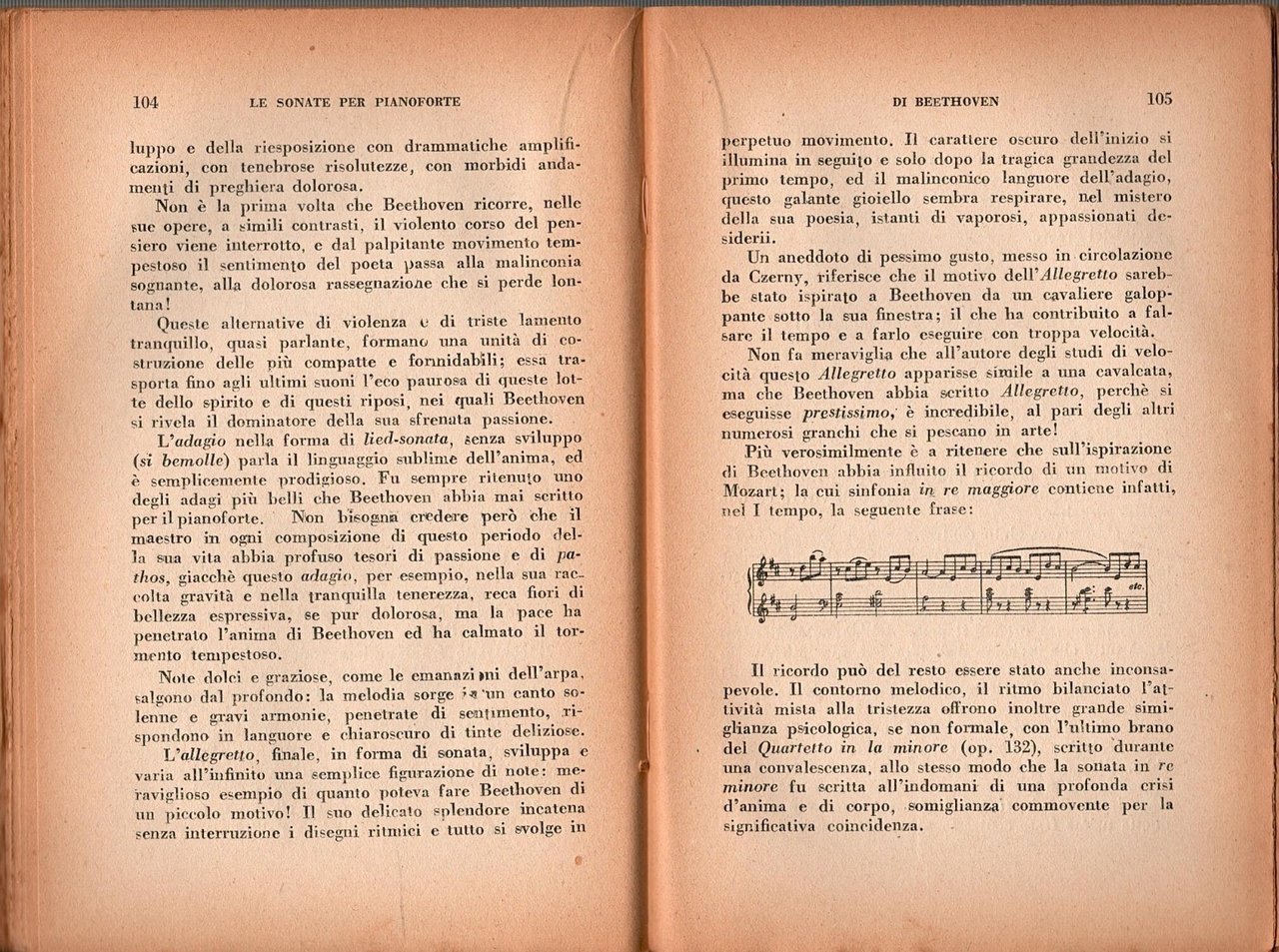 LE SONATE PER PIANOFORTE DI BEETHOVEN di Sergio Leoni 1948 Fratelli Bocca Libro