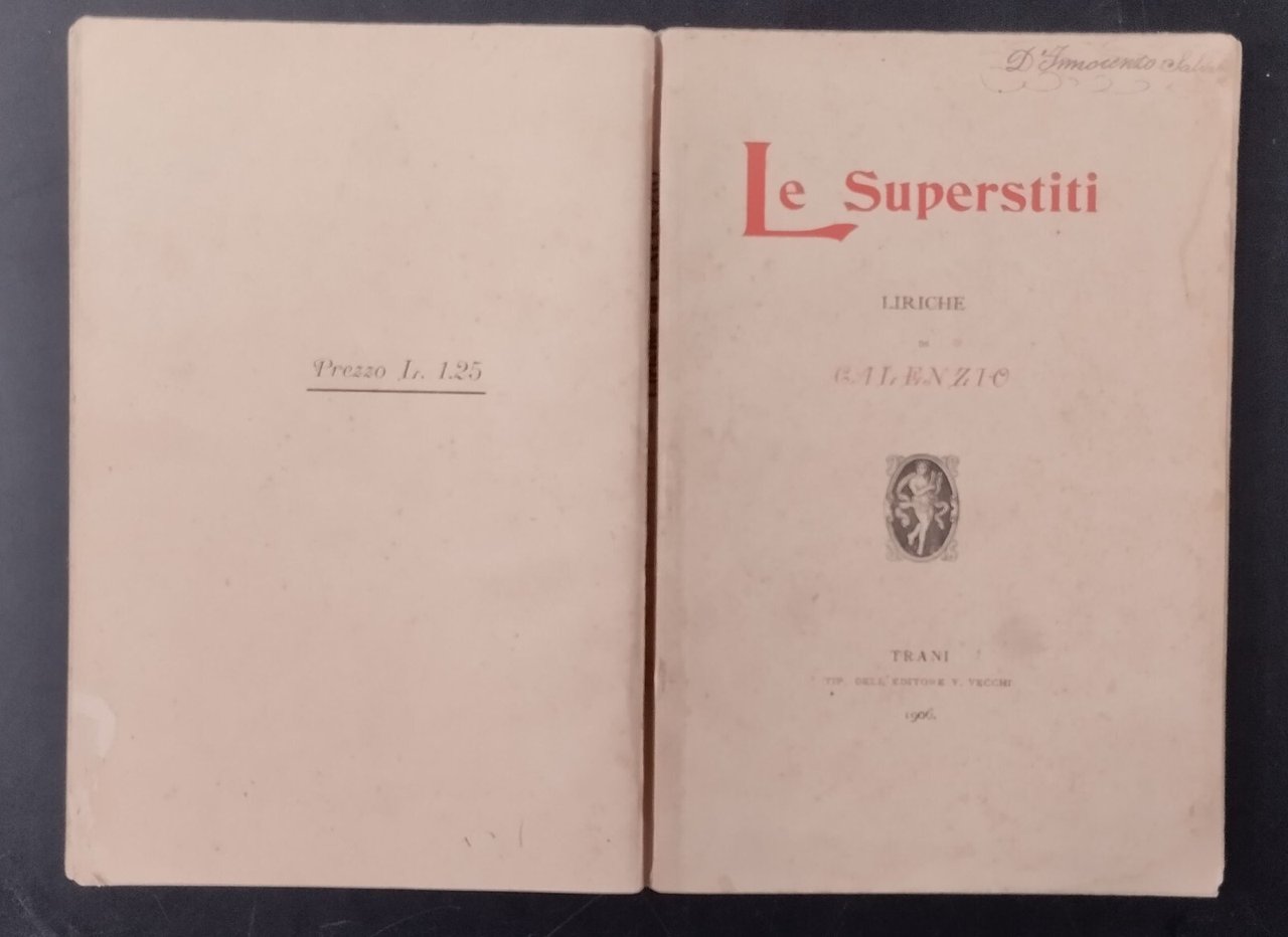 LE SUPERSTITI LIRICHE di Galenzio 1906 Trani Valdemaro Vecchi Libro poesie