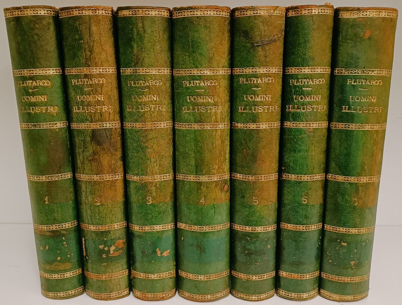 In 8, 7 volumi di pp. CIV+464, 601, 649, 654, 597, 368+CCCLX. Rilegatura coeva mezza pelle con impressioni in oro sul dorso. Tavole fuori testo. Collana degli antichi storici greci volgarizzati. Lievi abrasioni e piccole mancanze alle copp. Rare fioriture in special modo alle prime e alle ultime carte. Piccola mancanza all'angolo inf. della Tavola IV. Timbri ed etichette di biblioteca (vedi foto), volumi dismessi. Buono (Good) .