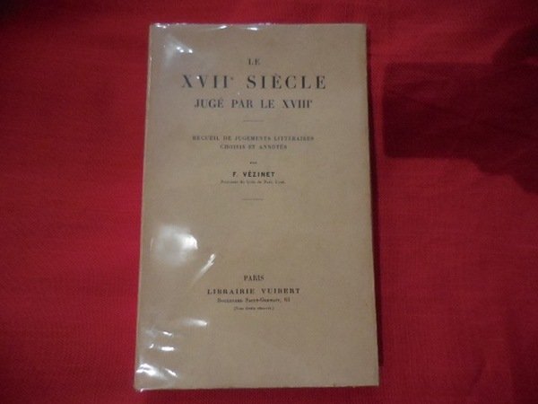 Le XVIIème siècle jugé par le XVIIIème, recueil de jugements littéraires choisis et annotés.