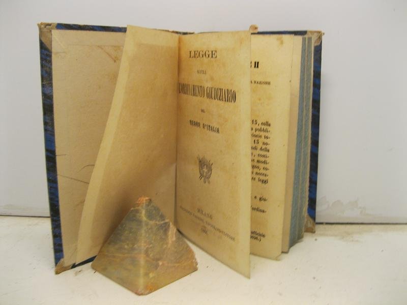Legge sopra l'ordinamento giudiziario del Regno d'Italia; LEG. CON: Regolamento generale giudiziario per l'esecuzione del codice di procedura civile; LEG. CON: Disposizioni transitorie per l'attuazione del codice civile; LEG. CON: Regolamento per l'esecuzione del codice civile italiano portato dal decreto reale in data 19 ottobre 1865; LEG. CON: Pianta del personale giudiziario del Regno d'Italia; LEG. CON Nuove norme pel patrocinio gratuito dei poveri