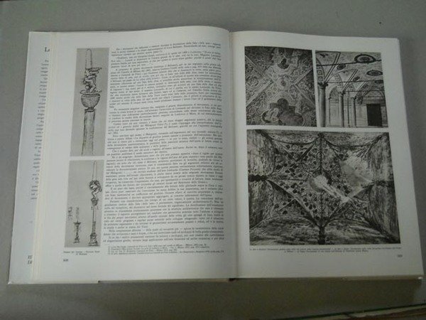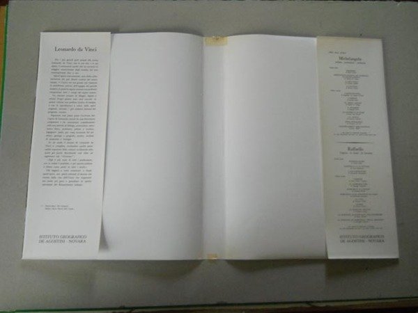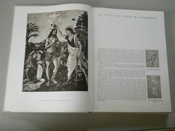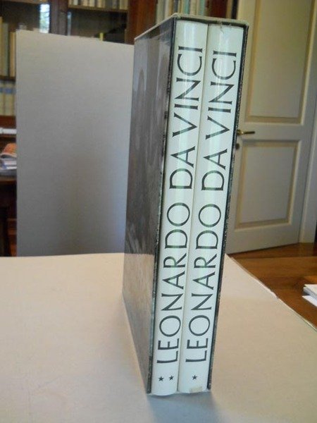 Fondamentale ed accurato lavoro sulla vita e sulla vasta e multiforme opera di Leonardo, con molte riproduzioni dei suoi disegni e un'ottima documentazione iconografica. Vol. I: Presentazione, La nascita di Leonardo, Il Volto di Leonardo, La vita e le opere di Leonardo, Leonardo e il disegno, Leonardo a Firenze e in Toscana, Leonardo a Milano e in Lombardia, Leonardo a Roma, Leonardo a Venezia, Leonardo in Francia, I manoscritti di Leonardo, Il pensiero di Leonardo, Studiare Leonardo, Leonardo in Belgio, Leonardo in Inghilterra, Leonardo in Germania, La matematica vinciana, L'astronomia vinciana, La fisica vinciana, La filologia vinciana, La musica vinciana, L'architettura a cupola, Leonardo architetto, La scienaz delle costruzioni; VOL II: L'ingegneria militare e le armi, Leonardo decoratore, La scuola di Leonardo, Il volo degli uccelli, Il "codice sul volo degli uccelli", L'anatomia e le scienze biologiche, Leonardo fisiologo, L'anatomia comparata, Leonardo glottologo, L'ottica di Leonardo, L'anatomia artistica, La botanica vinciana, Geologia e Geografia vinciana, Idraulica e nautica, La meccanica vinciana, Le macchine di Leonardo, I manoscritti di Leonardo a Madrid. Ottimo stato di conservazione (lievi segni del tempo alle sovraccoperte e al contenitore cartonato; sovracc. del vol.I con piede e cuffia del dorso rafforzati con due piccoli pezzi di scotch; per il resto volumi integri e completi).