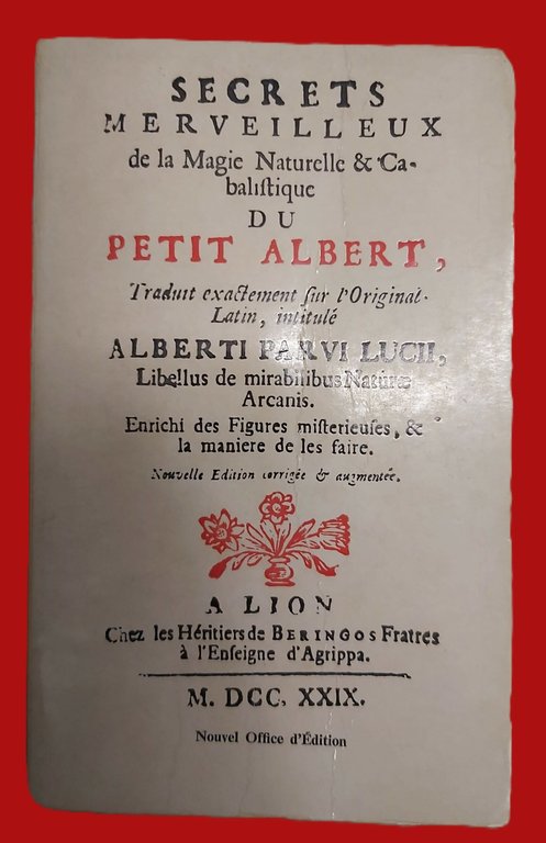 gr. vol. in-16, pp. 379, (4), bross. edit. con la riproduzione in copertina dell'edizione originale di Lione del 1729. Contiene il testo del Grand e del Petit Albert. [191]