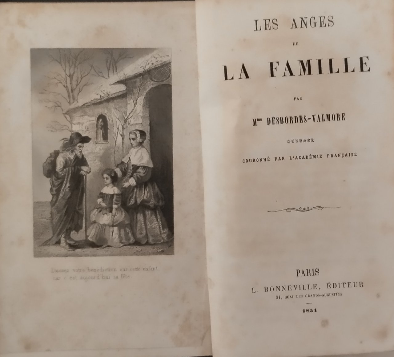 LES ANGES DE LA FAMILLE di Desbordes Valmore 1834 Bonneville Libro antico II ed