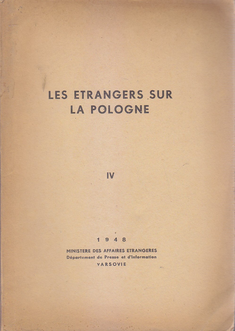 LES ETRANGERS SUR LA POLOGNE volume IV 1948 Ministere Des Affaires - libro