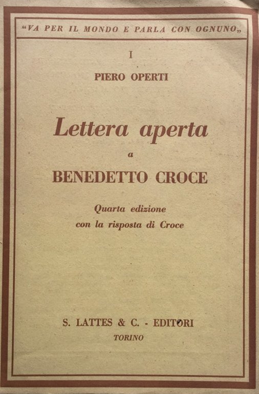 Lettera aperta a Benedetto Croce. 4ª ediz. con la risposta di Croce.