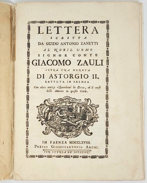 Lettera scritta al... conte Giacomo Zauli sopra una moneta di Astorgio II battuta in Faenza.