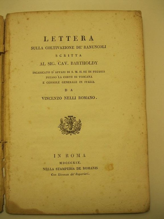 Lettera sulla coltivazione de' ranuncoli scritta al Sig. Cav. Bartholdy. Incaricato d'affari di S. M. il Re di prussia presso la corte di Toscana e console generale in Italia da Vincenzo Nelli Romano.
