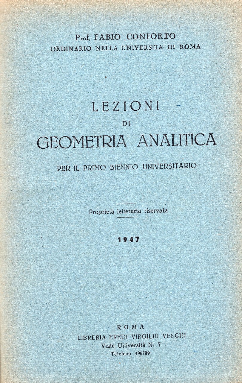 Lezioni di geometria analitica per il primo biennio universitario. Unito insieme a: Idem, Complementi ed esercizi di geometria analitica per il primo biennio universitario, Roma, Veschi, 1947
