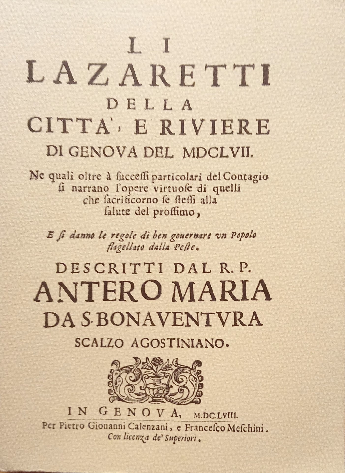 Li Lazaretti della Città, e Riviere di Genova del MDCLVII copia Anastatica