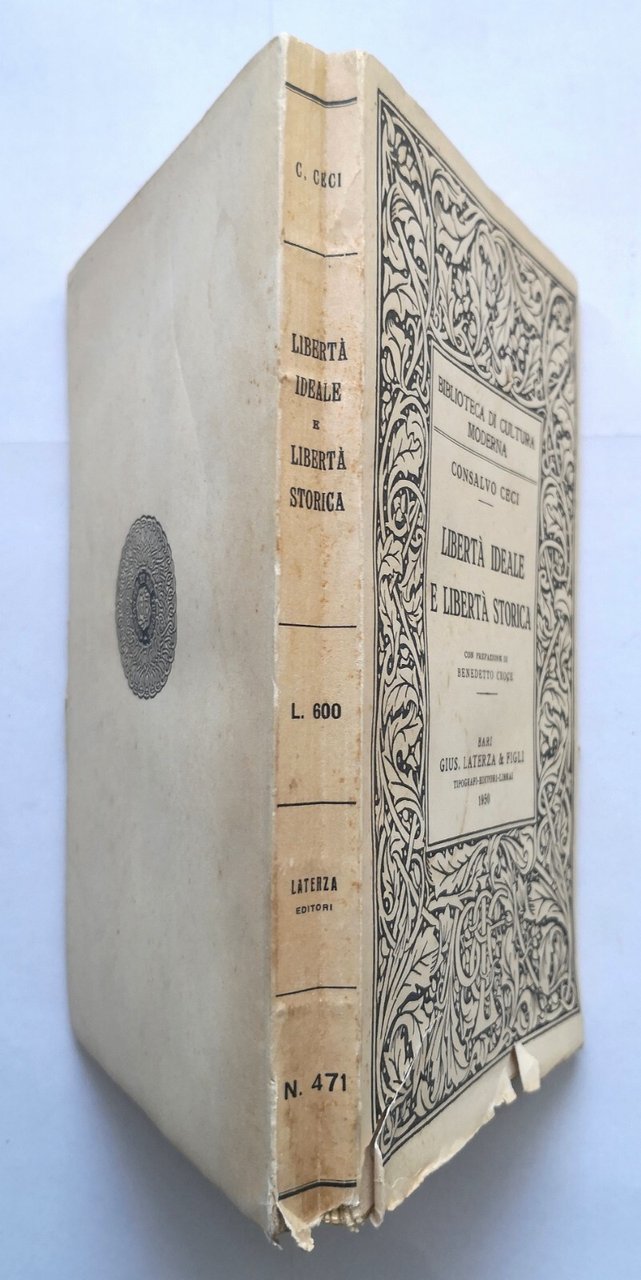 LIBERTÀ IDEALE E LIBERTÀ STORICA di Consalvo Ceci 1950 Laterza Libro Croce