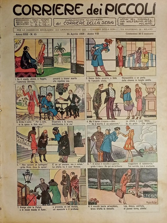Libri Ragazzi - Corriere dei Piccoli N. 15 - 1929 Copertina di Attilio Mussino