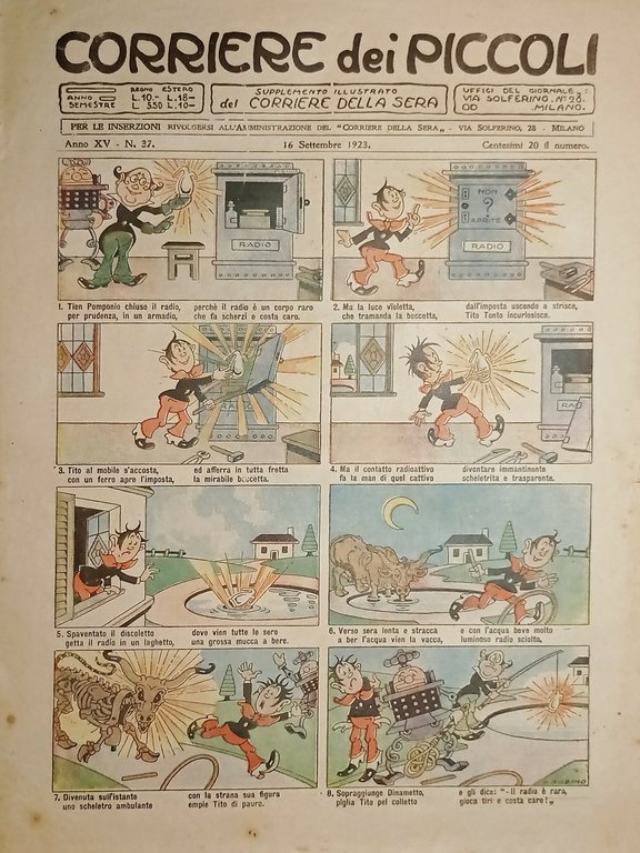 Libri Ragazzi - Corriere dei Piccoli N. 37 - 1923 Copertina di A. Rubino Testo in lingua italiana. Pagine 12 con molte illustrazioni. Copertina morbida. Condizioni molto buone.