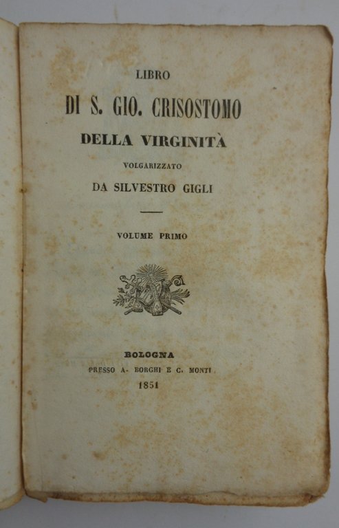 Libro di S. Gio. Crisostomo DELLA VERGINITÀ, volgarizzato da Silvestro Gigli.