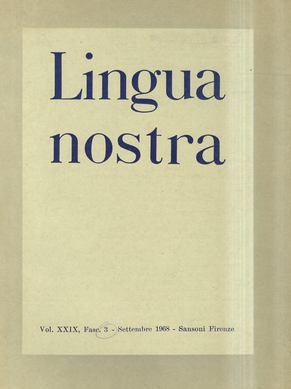 Lingua nostra. Vol. XXIX, fasc. 3. settembre 1968. | Livres anciens et modernes |