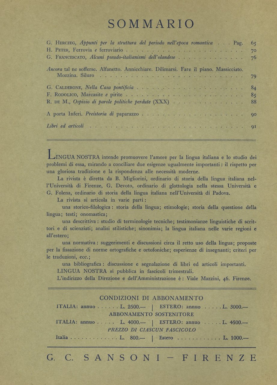 Firenze, Sansoni, 1968, un fascicolo in-8 grande, br. editoriale, pp. numerate da 65 a 95, [5]. Rivista diretta da Bruno Migliorini.