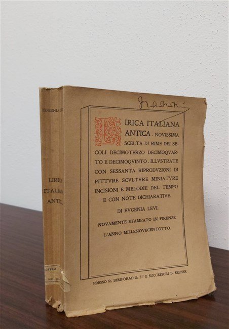 LIRICA ITALIANA ANTICA. Novissima scelta di rime dei secoli decimoterzo decimoquarto e decimoquinto. Illustrate con sessanta riproduzioni di pitture, sculture, miniature, incisioni e melodie del tempo e con note dichiarative.
