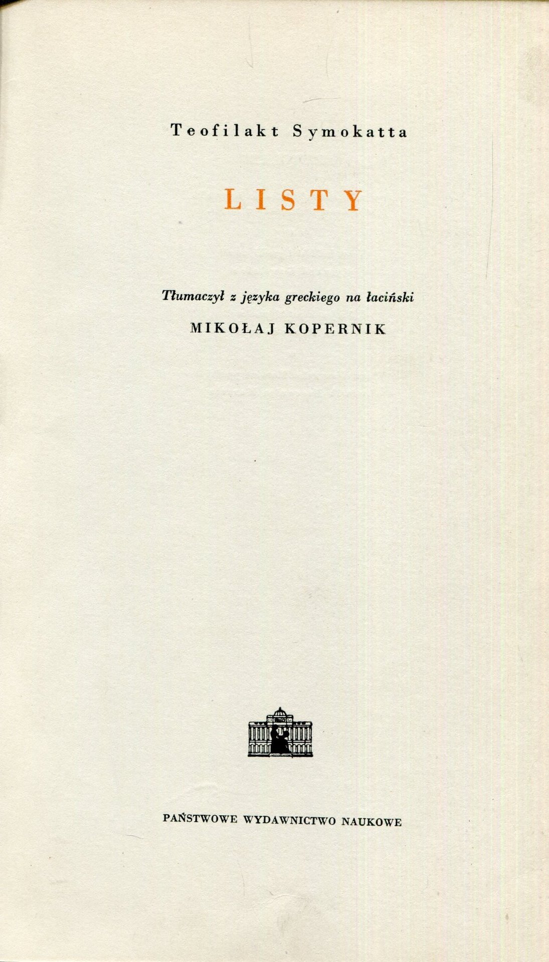 Listy. Tlumaczy z jezyka greckiego na aciski Mikoaj Kopernik ; [tekst aciski i grecki ustali Ryszard Gansiniec]. Facsimile przekladu Mikolaja Kopernika w wydaniu krakowskim z 1509 r.